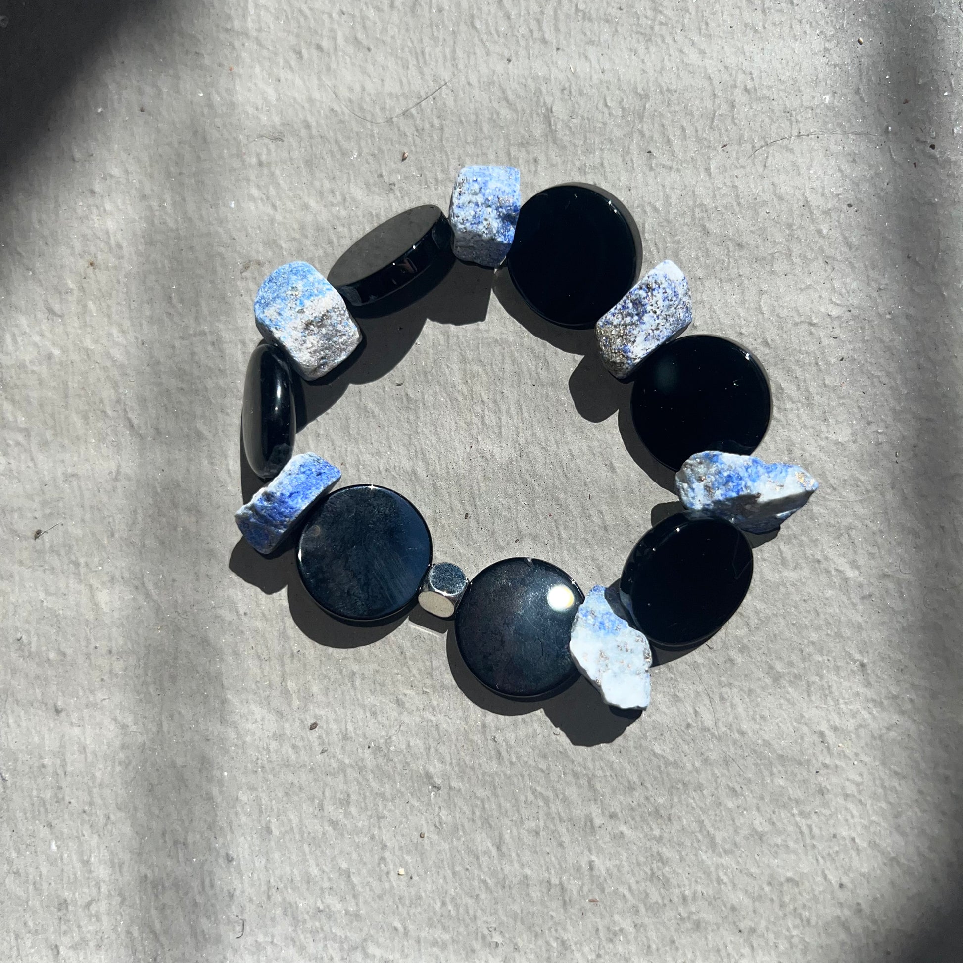 Crafted with onyx and lapis, Stormy Seas captures the raw strength of ocean waves in motion—fierce, honest, and alive.